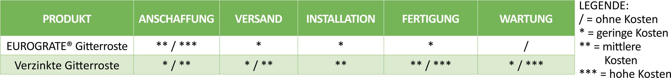 Haben Sie je die Installations- und Wartungskosten bei vergleichbaren Metallgitterrosten durchkalkuliert?