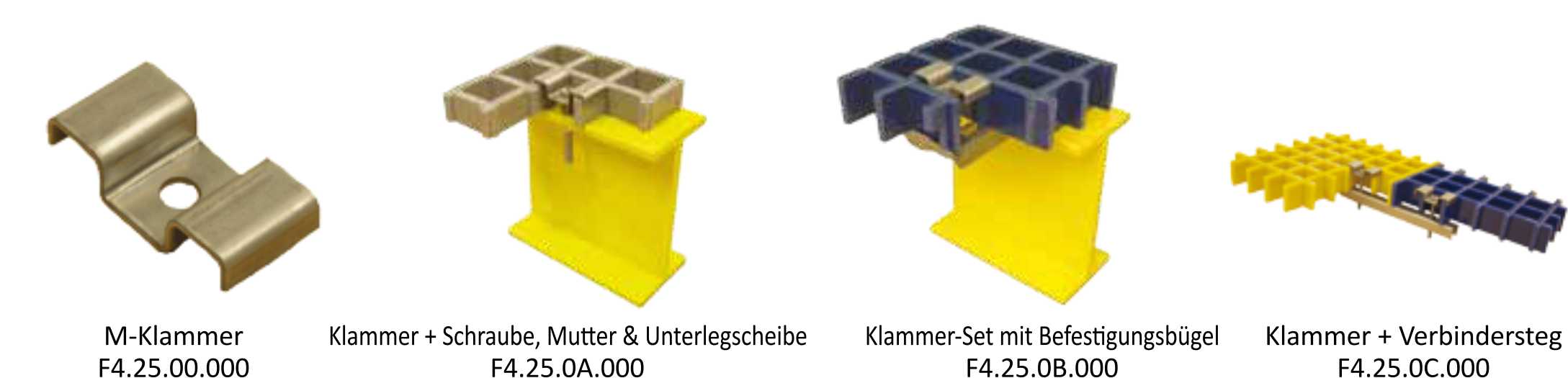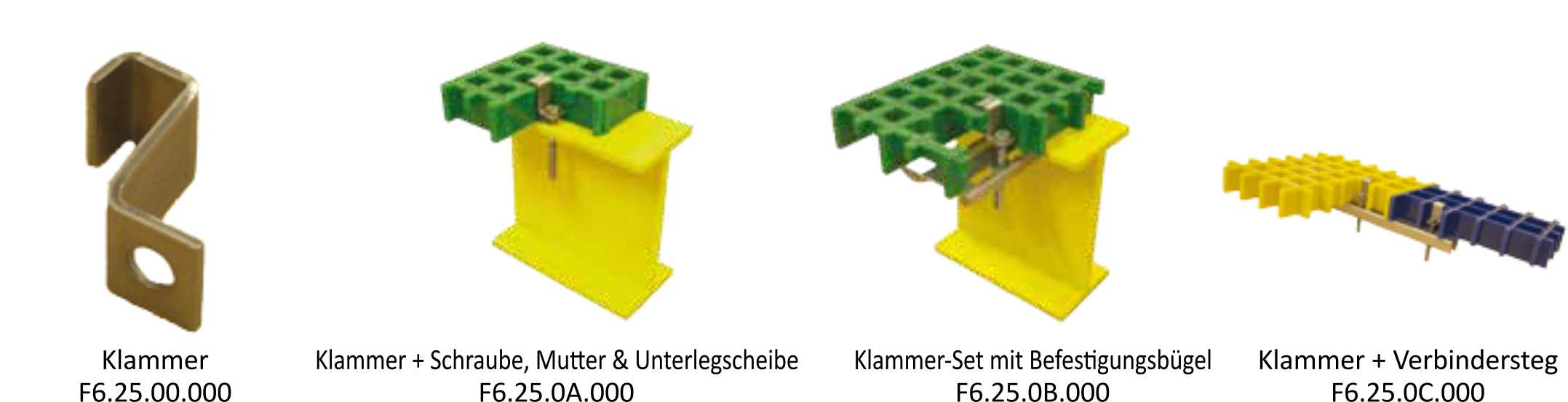 EUROGRATE® GFK Roste müssen mit zugehörigen Befestigungsklammern fixiert werden (min. 4 Klammern pro Platte). Geschlossene Platten verwinden sich bei Temperaturschwankungen gerne, weshalb wir dringend zur korrekten Befestigung an der Unterkonstruktion raten. Das Material der Befestigungsklammern ist sachgerecht den Umgebungsbedingungen anzupassen (verzinktes Material versus Edelstahl).