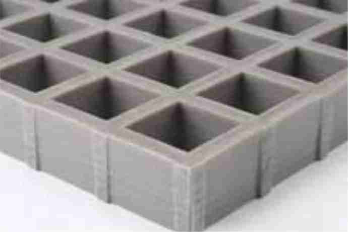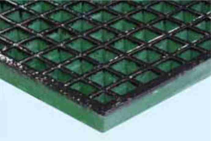 EUROGRATE® FRP gratings must have an anti-skid surface achieved through the combination of a permanent integration of silica grains, with a double protective coating made of UV resistant vinyl ester resin to increase the surface chemical resistance, and the concave surface of the bearing bars to increase wear resistance. Silica grains have a granulometry between 0,4 and 0,8 mm and must not be present on the vertical walls of the mesh. Simple concave surface and/or spraying silica or corundum grains are not accepted for their weak wear resistance.