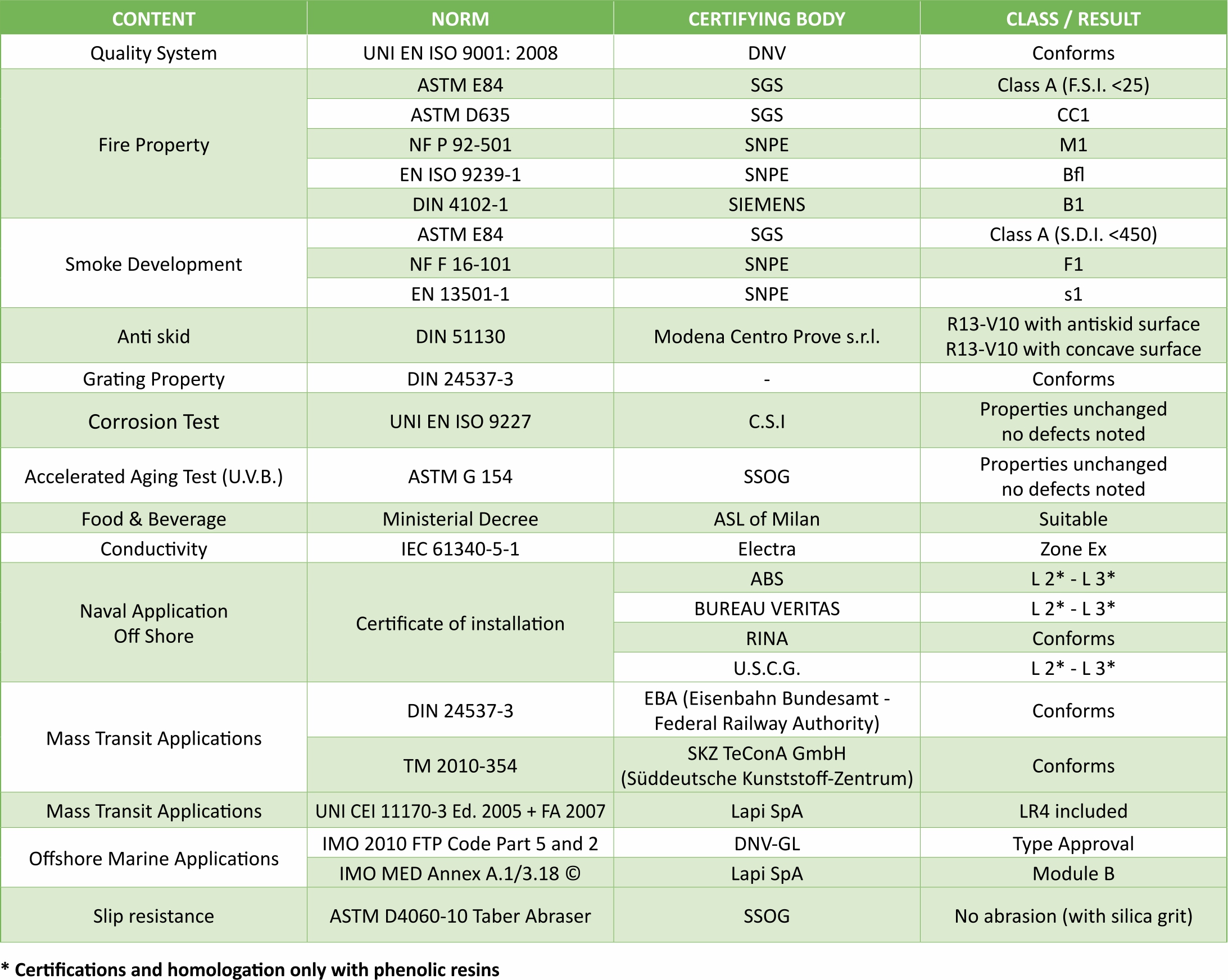 EUROGRATE® with its special resin systems, satisfies most of the safety issues and regulations for applications where it's necessary to limit the spreading of