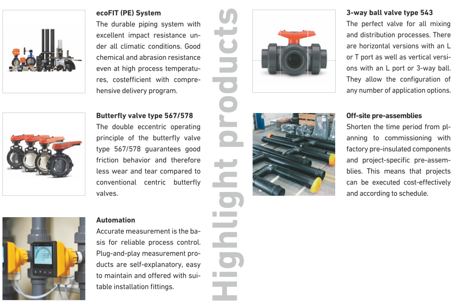 Weighing up to 60 percent less than metal systems, they have lower static requirements and are easier to transport. Innovative jointing technologies such as rapid cementing or integrated electrofusion allow them to be installed up to 50 percent faster.